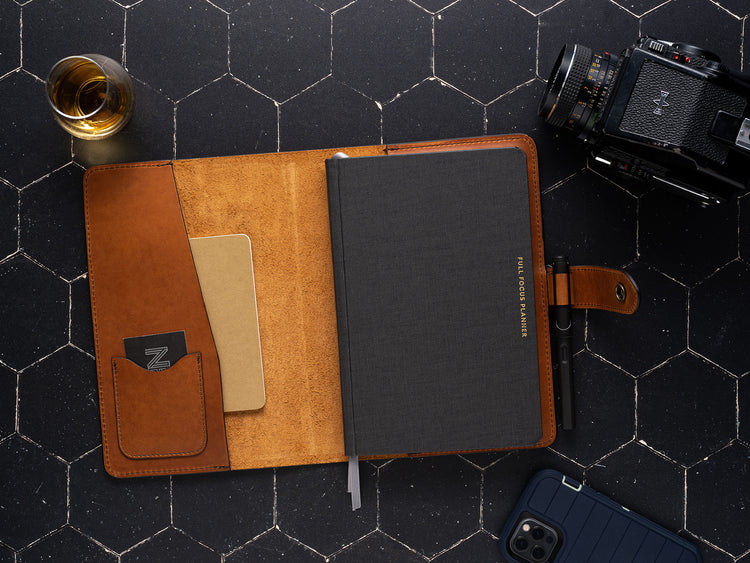 Our leather journal and portfolio collection is great for writers, notetakers and getting organized. The Field Notes Journal is designed to fit the Field Notes brand notebooks. And our Focus Planner Cover is specifically designed to fit the Full Focus Planner by Michael Hyatt.
